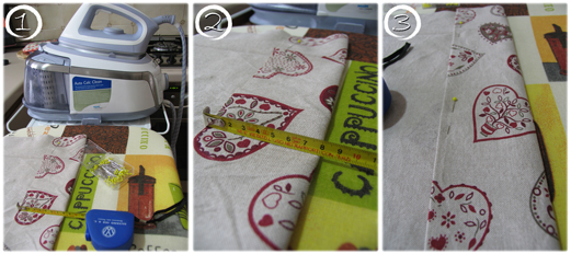 Se non volete cucire a mano, ma preferite fare con la macchina da cucire, dopo aver piegato la prima fascia (foto 5) anziche piegare l"angolo verso l"interno della tovaglia piegate il tutto verso l"esterno e cucite con la macchina lungo la piega. In questo modo vi troverete direttamente come nella foto 10.