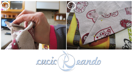 Una volta girato l"angolo fissiamolo con degli spilli così non si muove e procediamo con gli altri.