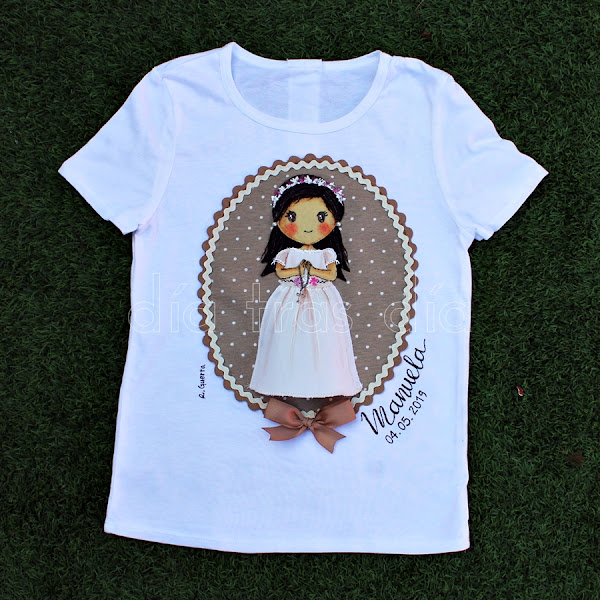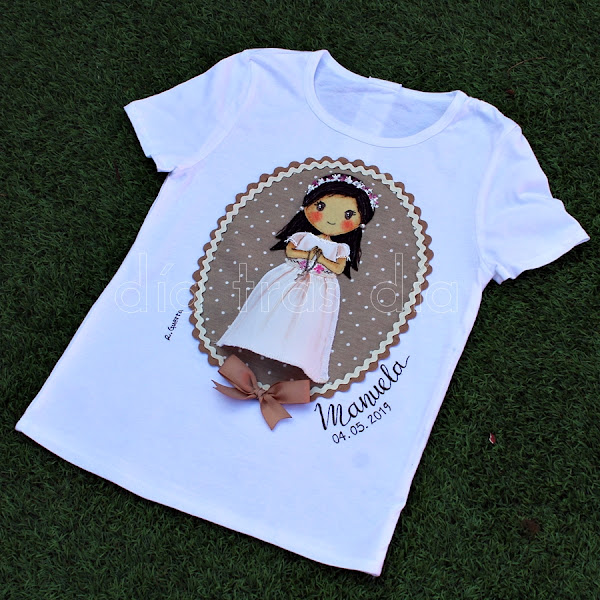 Hace ya varias semanas se puso en contacto conmigo Pauli, que quería que le preparara una camiseta para su peque Manuela, que hará su Primera Comunión el próximo mes de mayo.