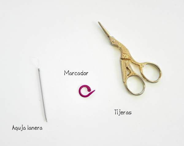 Tijeras, marcador, aguja lanera (la mía es algo diferente pero también utilizo las de plástico de toda la vida...)