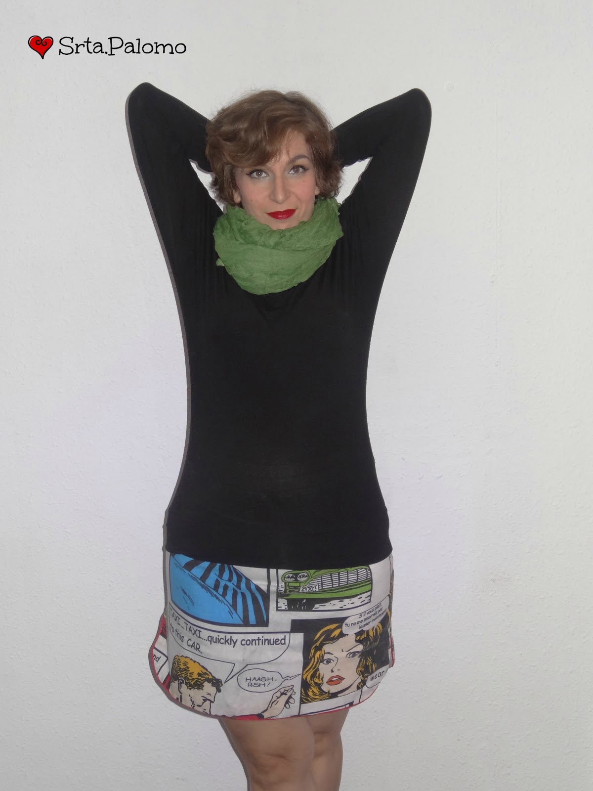 A ésto se une que tenía ganas de una falda con la tela de cómic con la que hago los bolsos (AQUÍ y AQUÍ) y uniendo ganas e ideas salió ésta falda