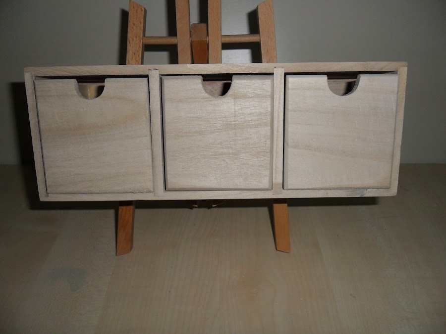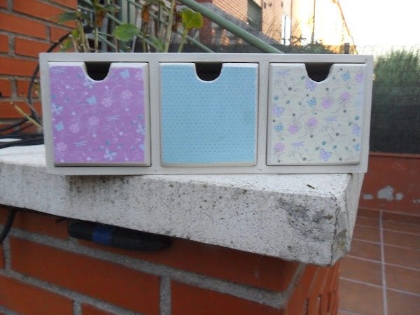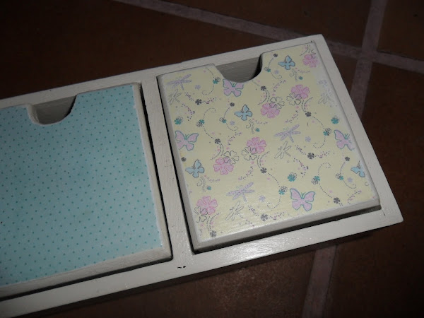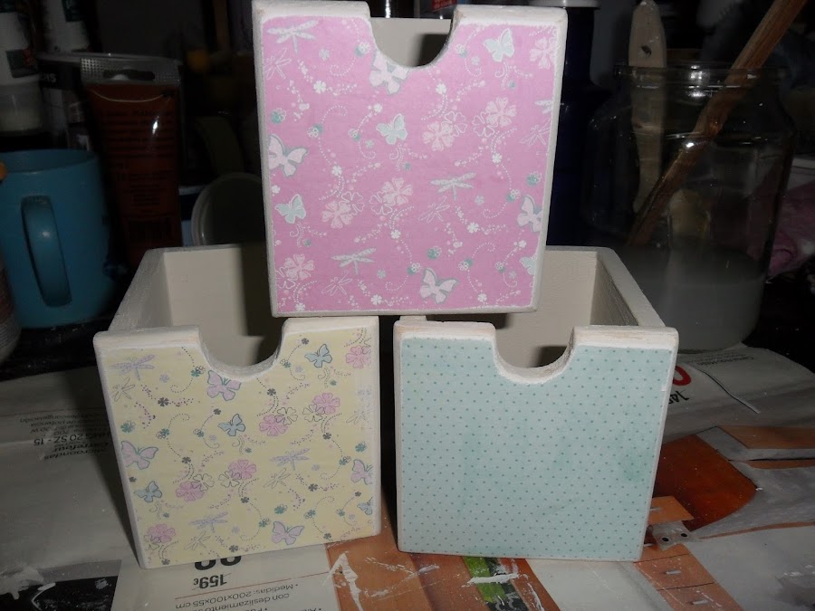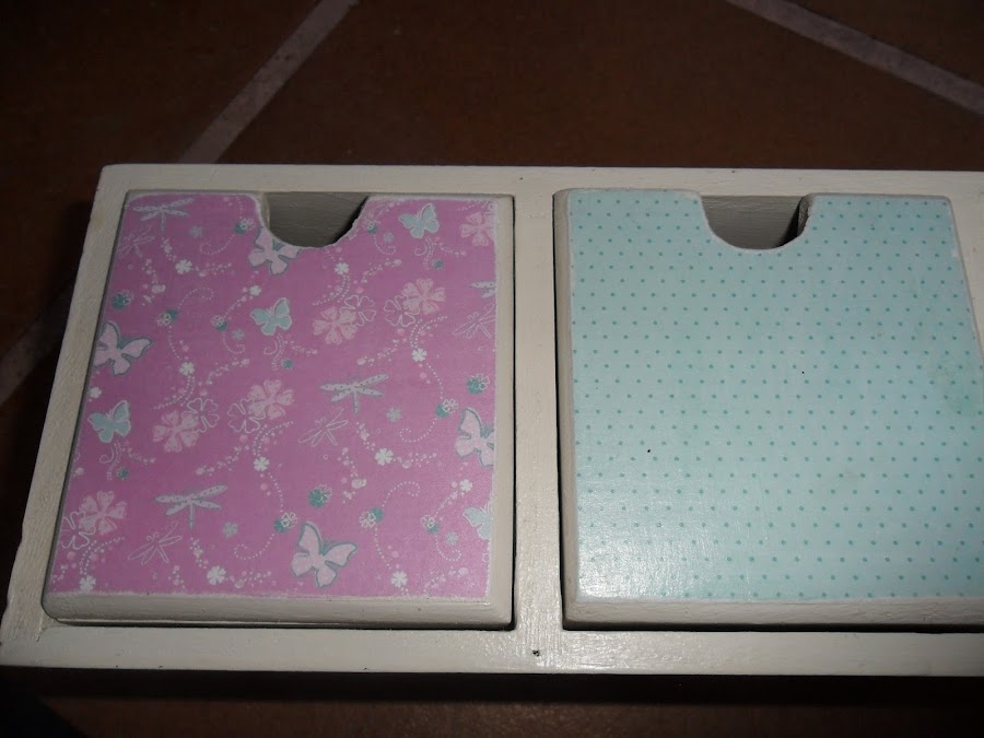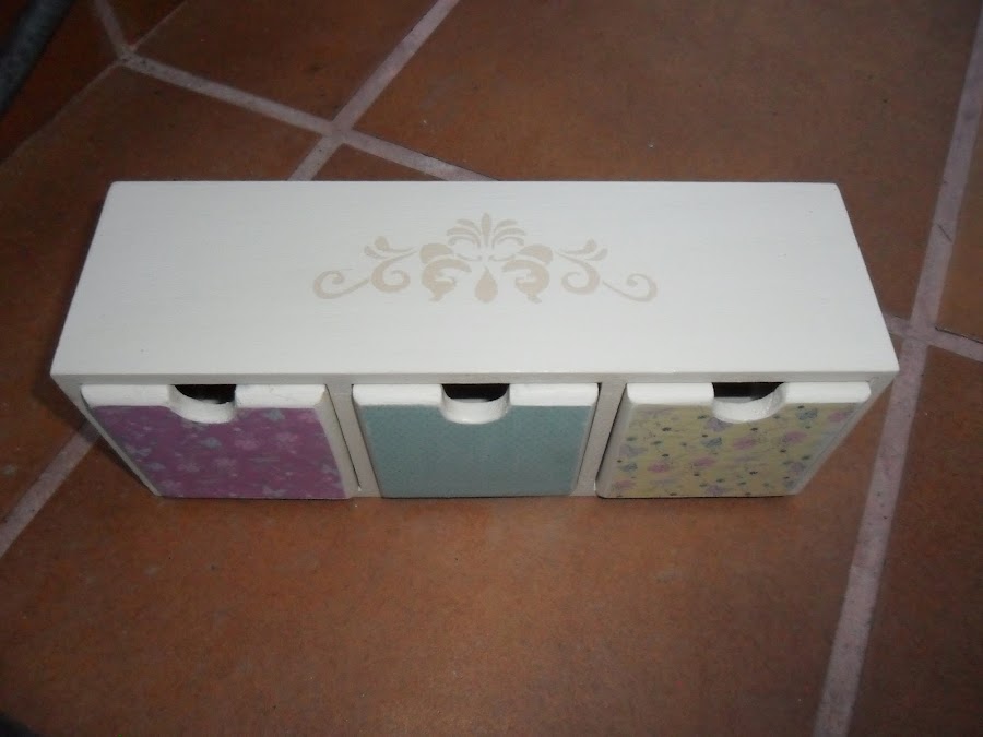 Los cajoncitos después de pintarle en la parte de delante le puse papel de scrap.