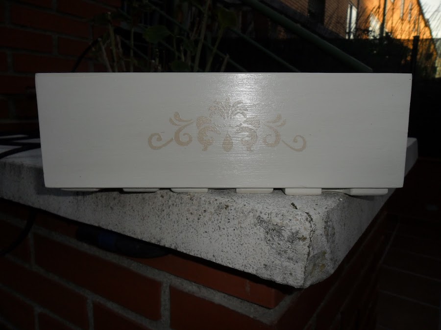 Lo lijé y lo pinté con pintura color marfil de Les Decoratives, esta pintura la encontré en Leroy Merlin, no la conocía pero la probé y está bastante bien, no necesita imprimación y es densa, con una mano ya casi cubre, yo le dí dos.