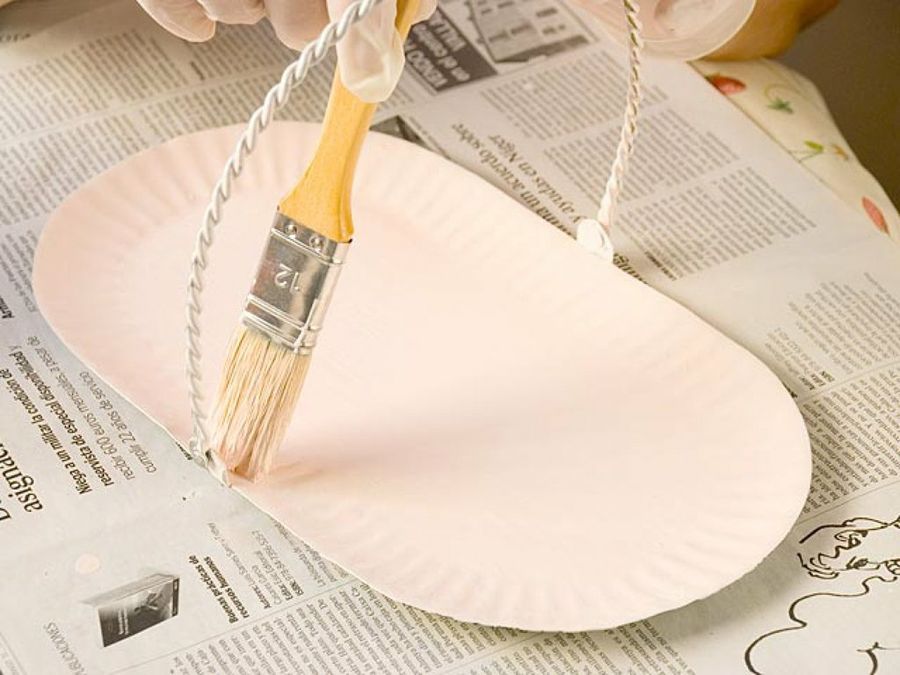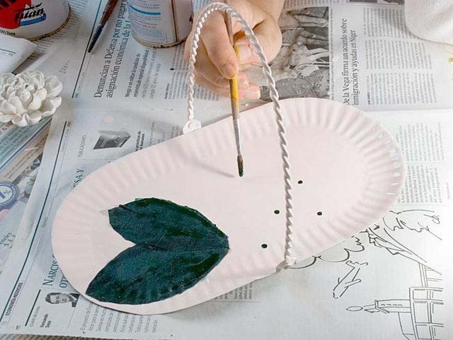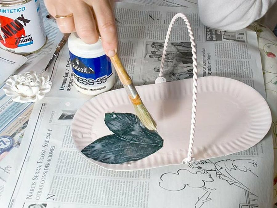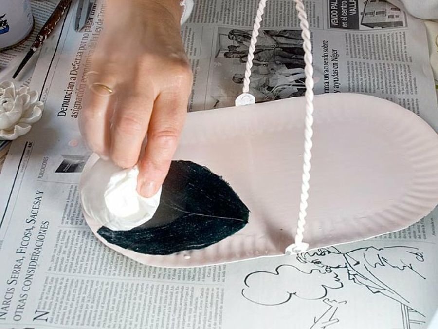Pintamos también el asa trenzada, procurando que la pintura llegue a los recovecos dando toques con la punta del pincel.
