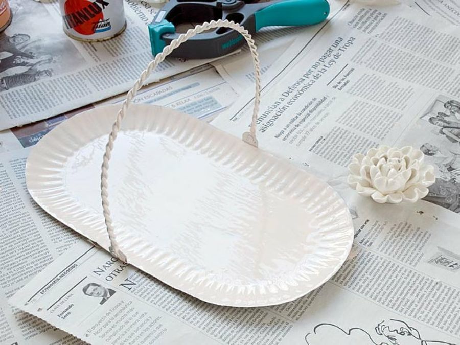 La primera mano ya ha secado. Colocamos el adorno de la sopera al lado de la bandeja, verificando que combinan armoniosamente.