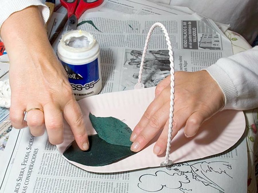La misma mezcla de cola y agua nos sirve para pegar las hojas en la bandeja.