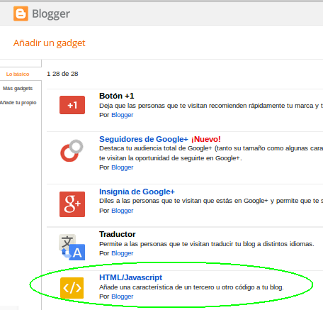 7. Se abrirá la siguiente ventana emergente donde debemos buscar y hacer clic sobre el titulo: HTML/Javascript.