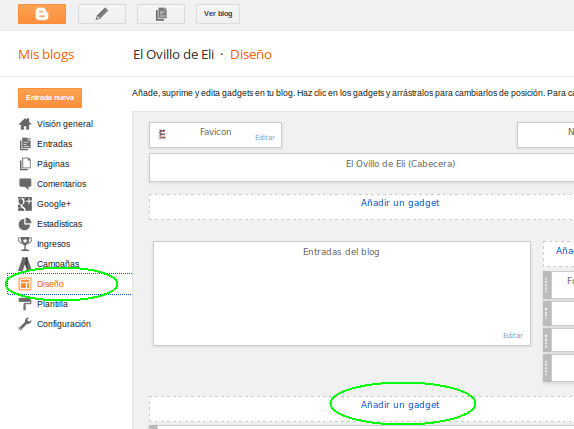 5. Seleccionar Diseño en la pestaña ubicada en la columna izquierda del blog.