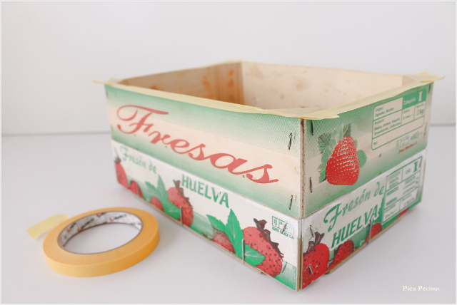 Hacer una caja a partir de dos de fresas es sencillo. Esta es la tercera que hago, antes probé con la de estrella (aquí) y la de corazón (aquí).