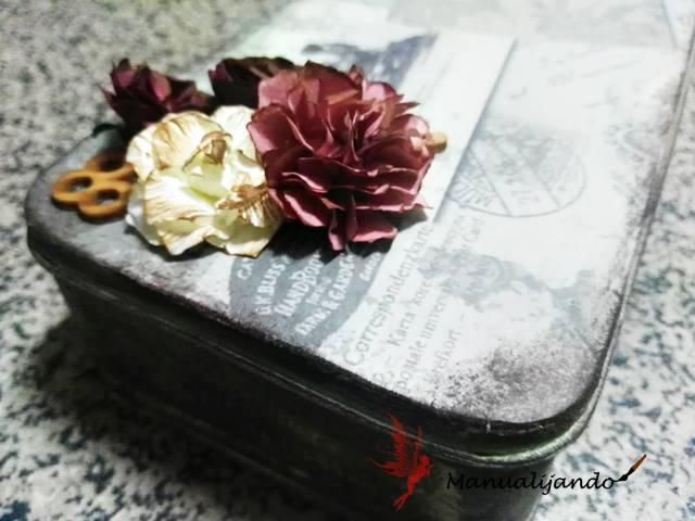 Como toque final y decoración, una llave y una flores, también envejecidas.