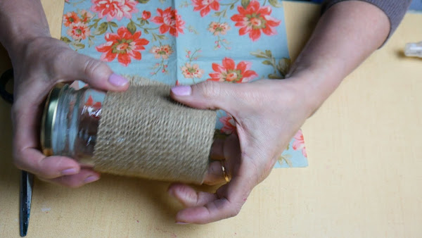 Mido el alto que quiero darle y el ancho para que cubra alrededor del frasco.