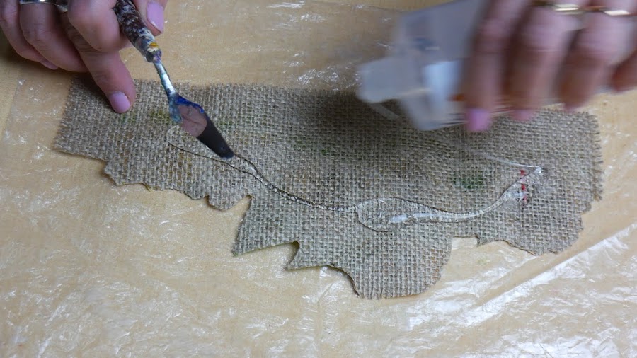 Les recuerdo que, para poder trabajar el pegamento de silicona con un pincel, como lo voy a hacer yo, le agrego un poco de alcohol medicinal y así es más fácil su esparcimiento.