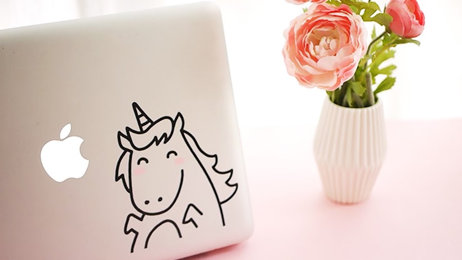El unicornio lo he utilizado para decorar la trasera de mi portátil, que la llevaba muy sosa. Os prometo que estoy que me muero con él. Cada vez que lo veo me encanta.