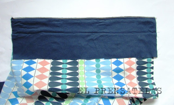 He unido derecho con derecho el extremo de la almohada y el rectangulo de tela, y he cosido y remallado los bordes: