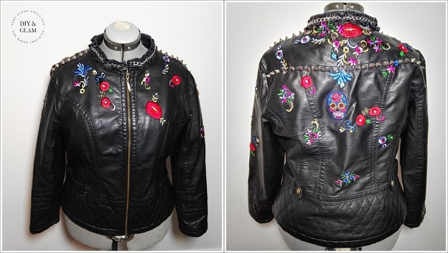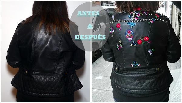 Lo que es el destino algunas veces!!! Te cuento....... Hace un tiempo tuvimos una comida familiar, algo bastante habitual en mi familia. El caso es que cuando quedamos para tomar algo antes de la comida, llegó mi hermana con una biker de cuero (chamarra o perfecto de cuero) con flores de cuero bordadas y tachuelas.