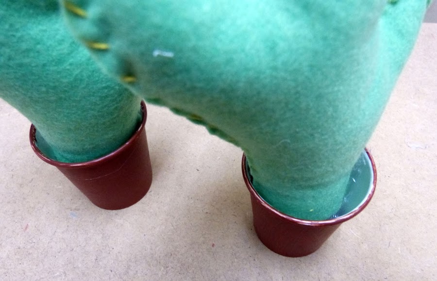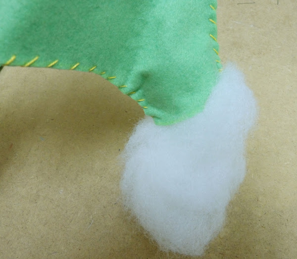 Una vez que tenemos todo cosido, introducimos la floca, a poquitos, primero rellenamos los bracitos del cactus, después la cabeza y finalmente el resto.