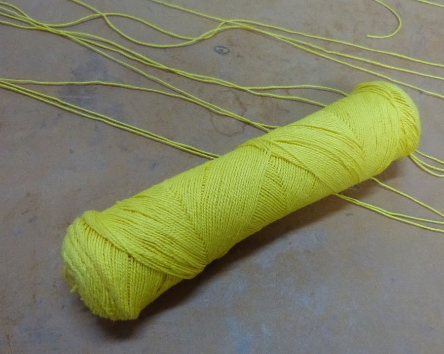 Enhebramos la aguja con el hilo, aproximadamente 75cm. No juntamos los extremos y hacemos un nudo en uno de ellos.