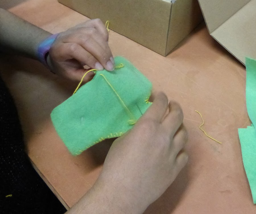 La puntada que veis en esta foto es un punto de sobrehilado que es el que utilizo cuando el taller es para niños, ya que para ellos es muy sencillo.