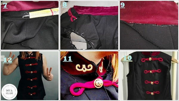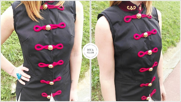 A última hora decidí pegar estos adornos en el cuello. Supongo que te sonará, la he utilizado para unas hombreras decorativas y para una chaqueta de estilo militar.
