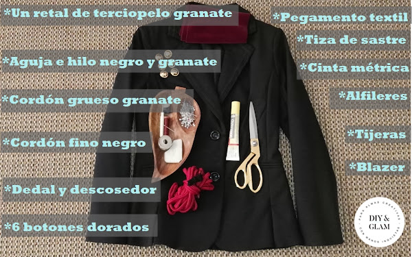No me queda otra que hacerlo yo. Con el tiempo contado, literalmente, tenía un día para darle el regalo. Me voy como una loca a una tienda y compro una americana (blazer) básica. Y en la mercería todo lo necesario para customizar la prenda.