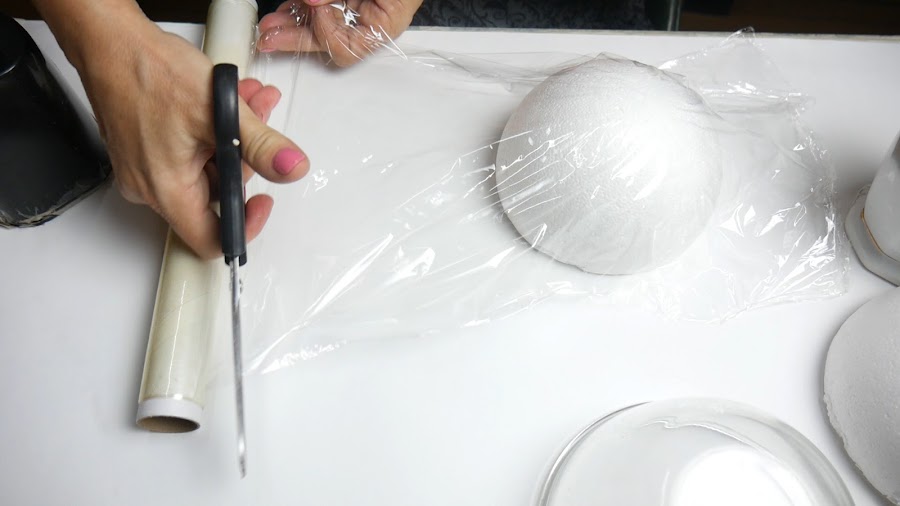 En la media esfera de telgopor como el film no se adhiere lo sujeto con cinta de papel en el interior