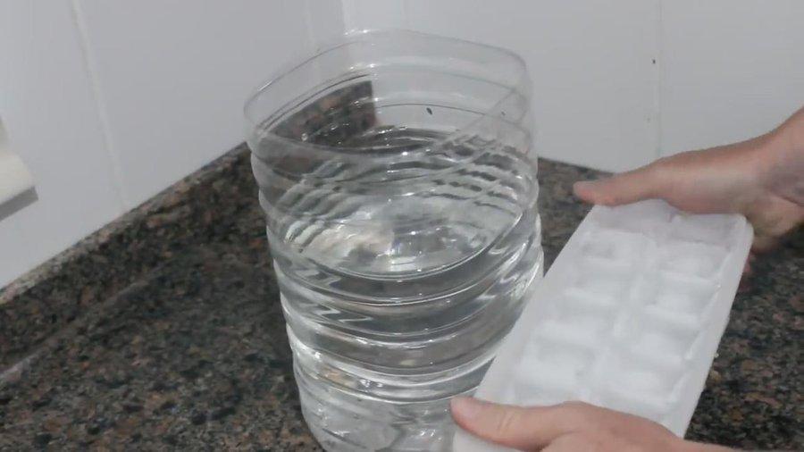 Luego, en un recipiente profundo colocarás agua y una cubetera completa de hielo…