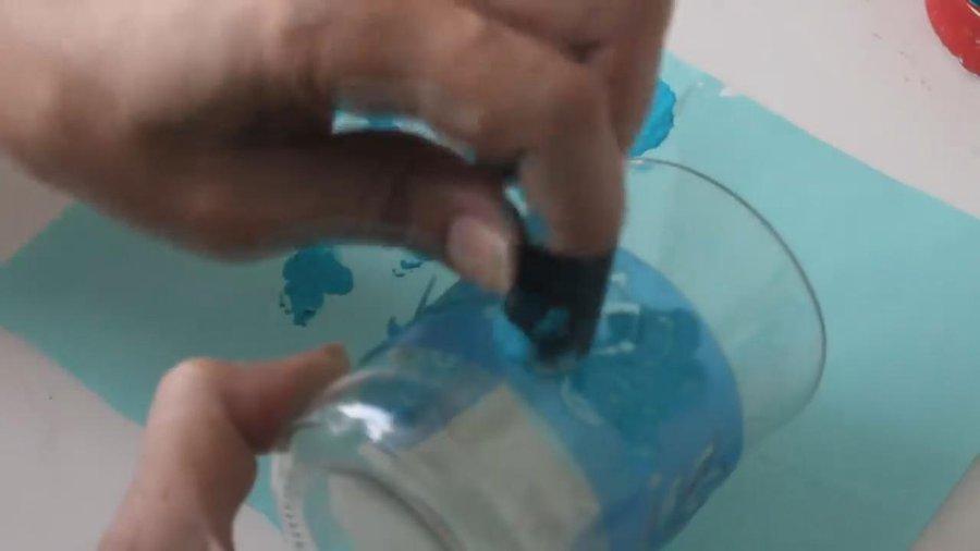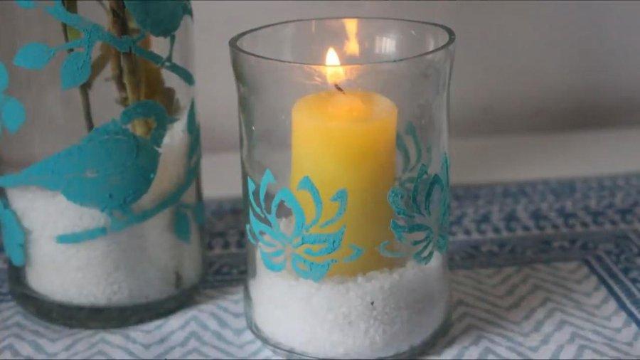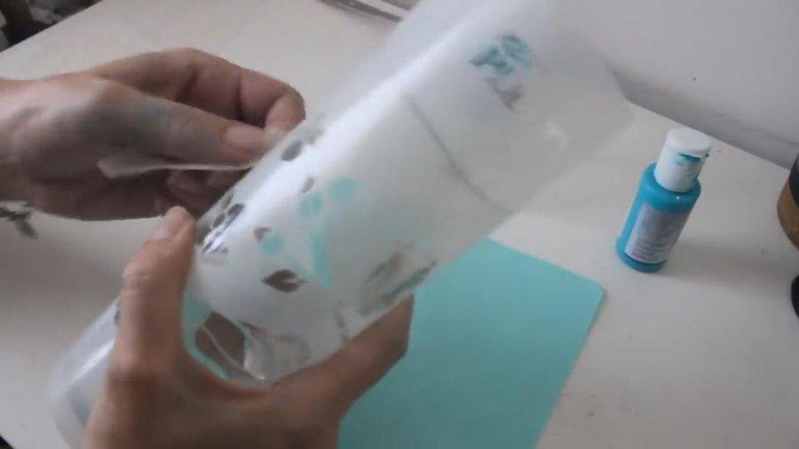 A continuación colocarás un stencil sobre la superficie del recipiente y para que no se mueva lo fijarás con cinta de papel…