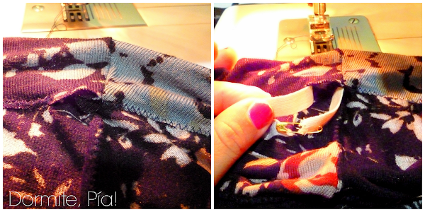 Ayudate con un alfiler de gancho y pasá el elástico. FIJATE QUE ESTÉ DERECHO y cosé los dos extremos con unas cuantas puntadas.