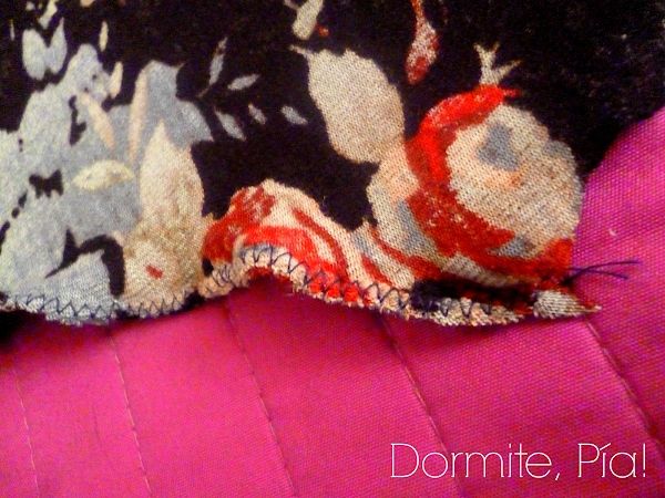 Ahora que ya tenés las 2 piezas de tela, ponelas juntas enfrentando los derechos y, con costura zig-zag cosé la parte curva.
