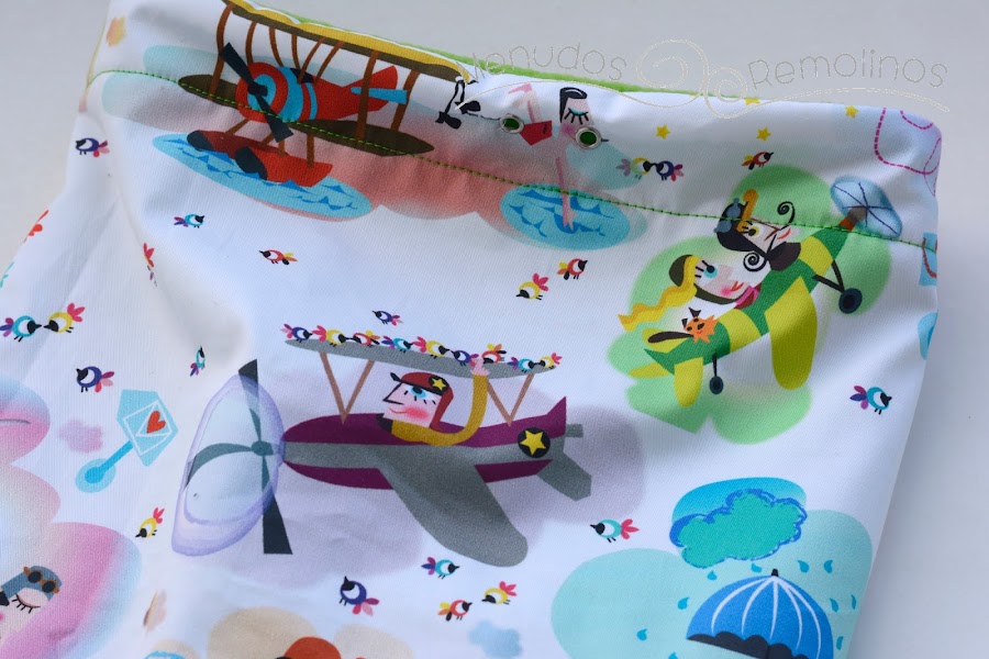 Estaba como loca por usar la tela de aviones de Inkalily Fabrics, y ella ha sido una de las elegidas para hacer este buff.