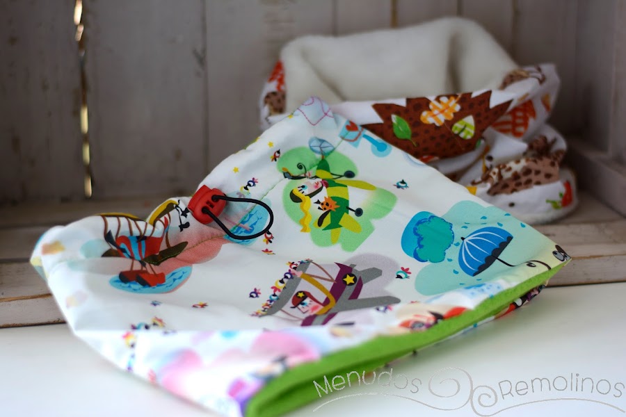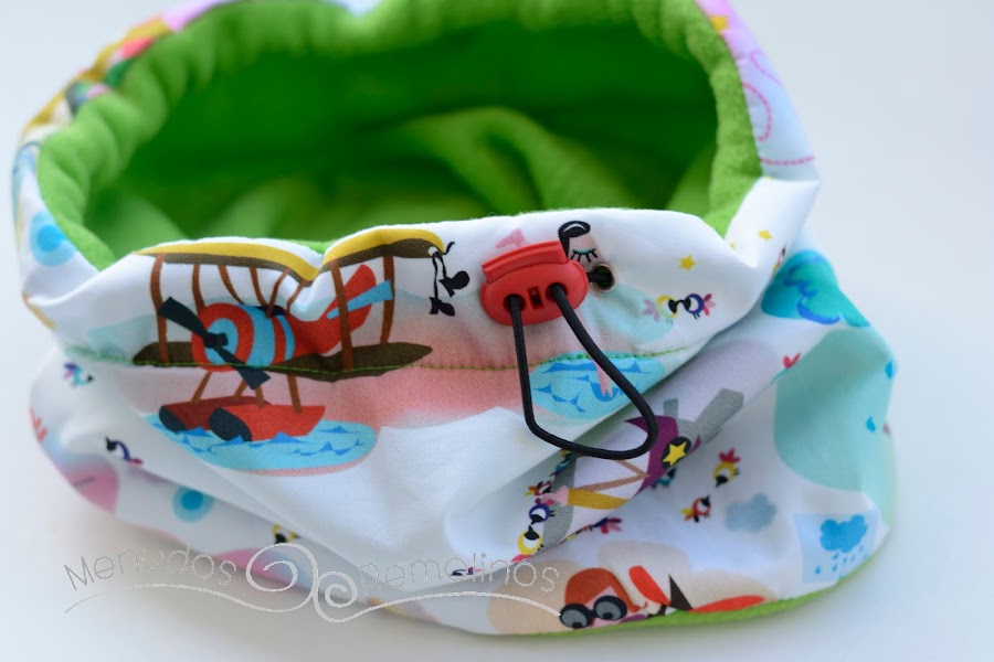 Yo al final me vine arriba y cosí dos cuellos, uno para cada uno de mis hijos. Para el peque usé una tela minky supersuave y la hice sin goma. También queda muy chula y os ahorráis un paso