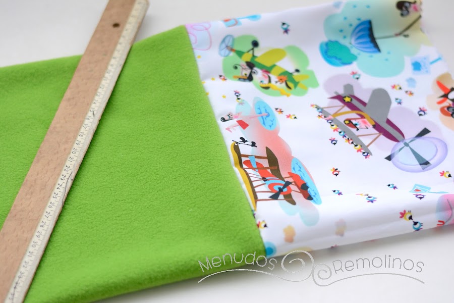 Lo primero que haremos es cortar 2 piezas rectangulares: una de tela de algodón y otra de tela polar o minky (el minky es mucho más suavecito sobre todo si lo vais a hacer para un bebé)