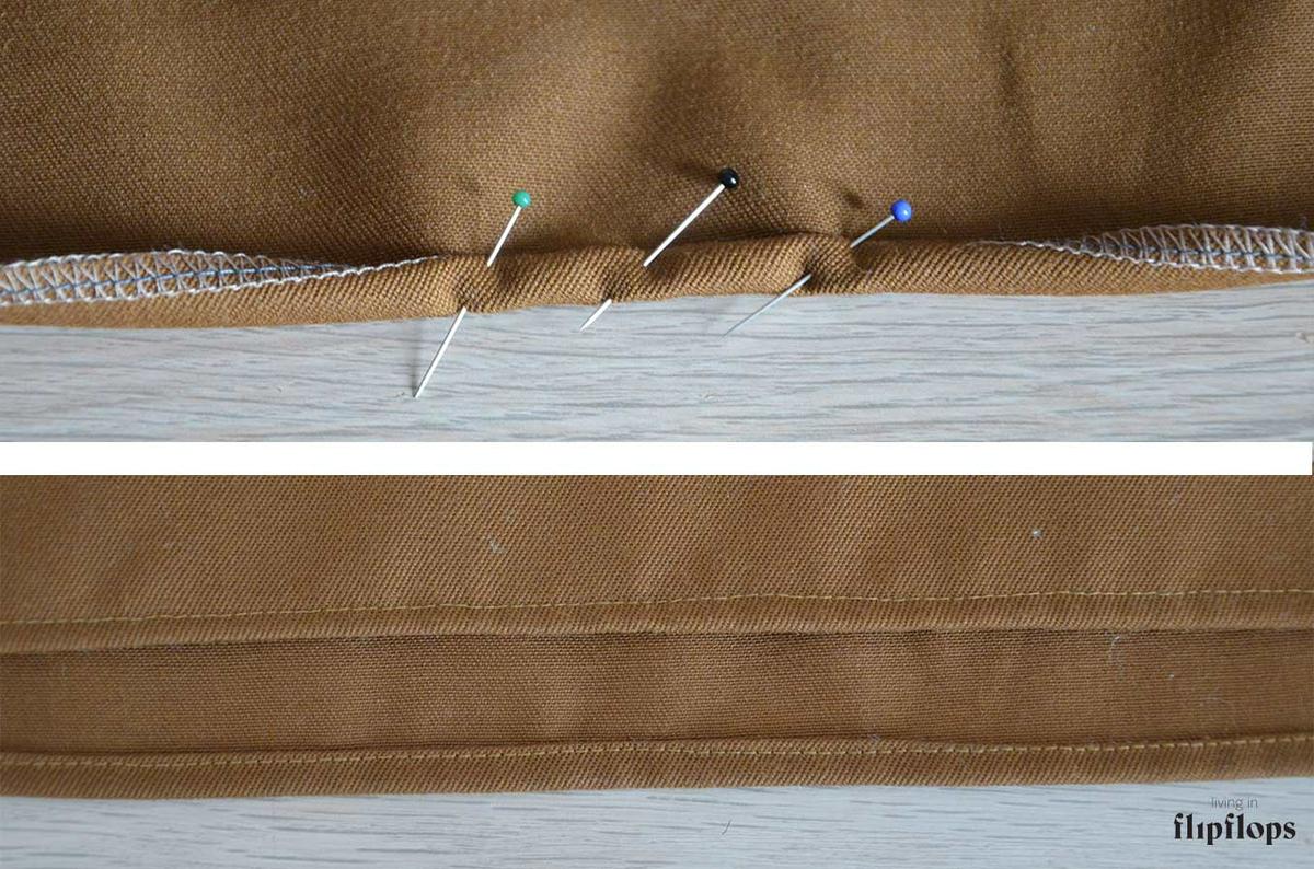 9- Remata la cinturilla, pasando un pespunte en el borde de esta.