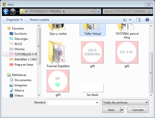 y nos abrirá una venta para elegir el archivo, aquí los vamos seleccionando en el orden en el que queremos aparezca cada imagen.Si te fijas podemos cambiar el tamaño y la velocidad en la que queremos aparezcan las imágenes.
