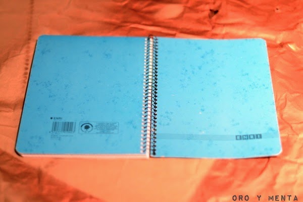 Seguro que tendréis por casa un cuaderno normal y corriente y algún spray de pintura. Si es de color cobre mejor. Ya sabéis que me encanta este color y tengo varios proyectos con este color o material.