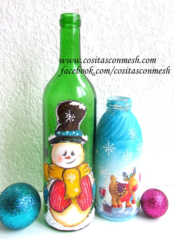 Amigos uno de mis adornos favoritos para esta navidad, son estas botellas con luces que hoy te enseñare cómo decorarlos paso a paso, te acuerdas que la semana pasada te enseñe cómo decorar estas botellas con servilletas de decoupage, pues ahora lo pintaremos a mano, no es nada difícil, ya que el diseño del muñeco de nieve es muy sencillito, solo tienes que tener muchas ganas de hacerlo.