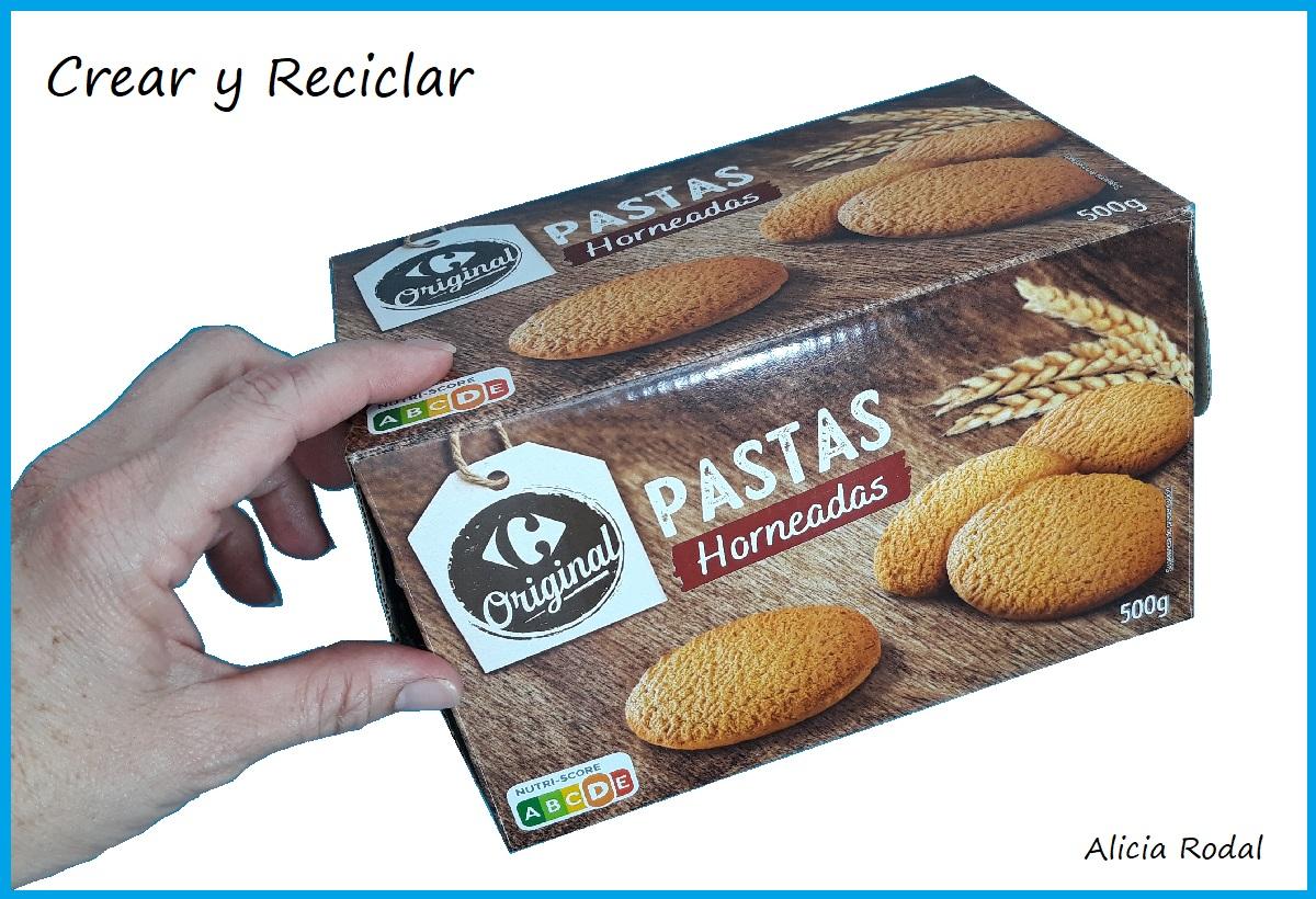 Este tipo de cajas de galletas, suele ser de un cartón o cartonaje grueso de un canal, lo que las hace unas cajas bien fuertes y resistentes, con las que podemos hacer una buena caja organizadora, joyero o baúl.Lo primero que hacemos es abrir la caja por los lados y la cortamos a lo largo, pero no por la mitad, es decir, la pieza superior debe ser más pequeña que la inferior.