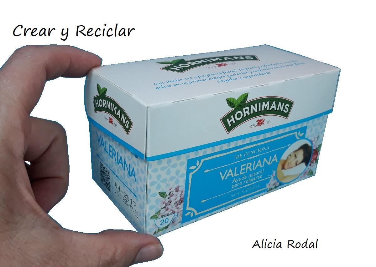 Para esta idea voy a reutilizar una caja de té. Esta caja tiene forma rectangular y es un poco más grande que la anterior.Esta tercera idea es la más sencilla de las tres, porque ni la voy a desarmar, ni la voy a forrar por dentro, ya que el estampado de la caja me gusta así tal cual, con su forma, diseño y color original.