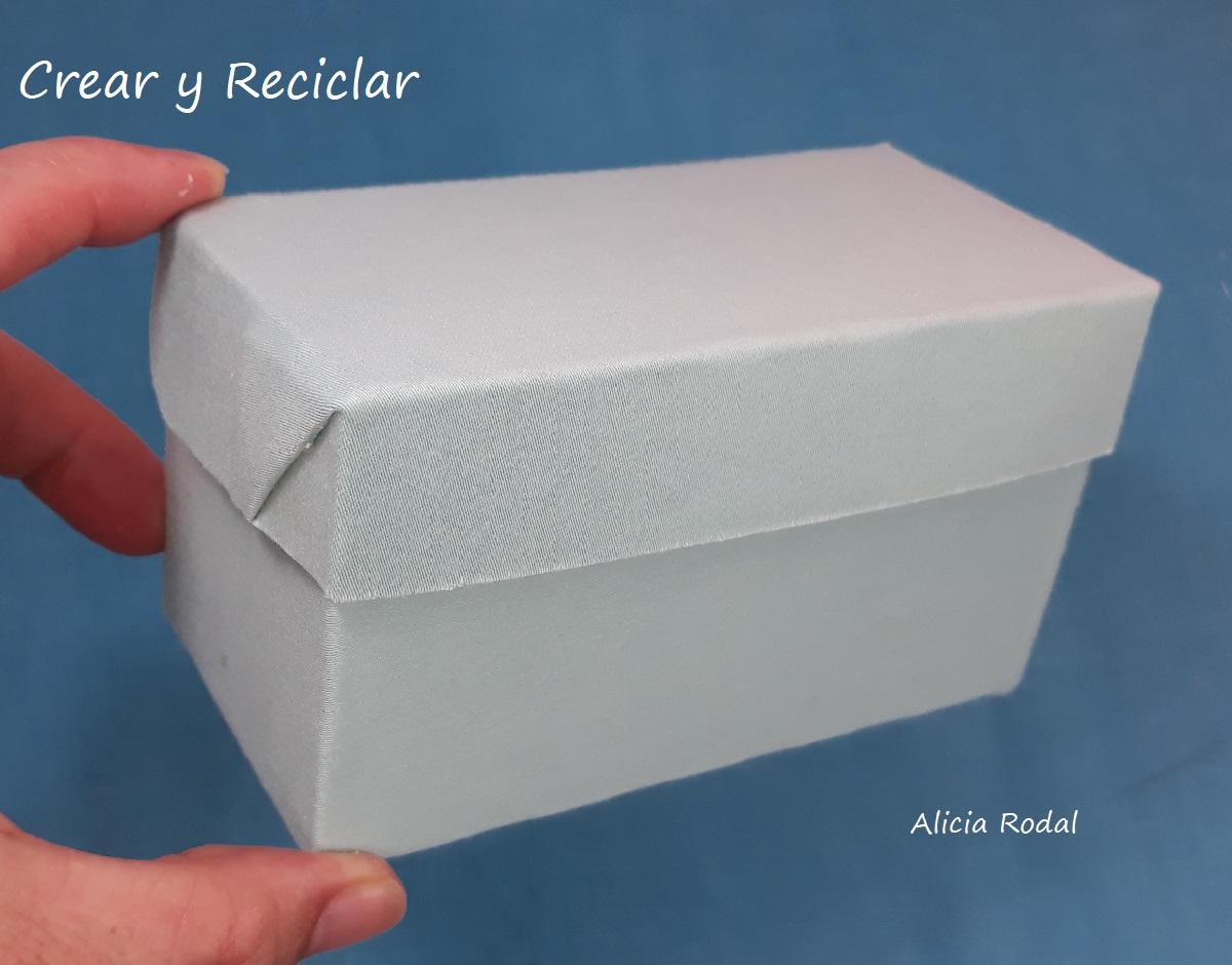 Una vez que ya la caja está forrada la pegamos de la misma forma como estaba para armarla y devolverla a su forma original.