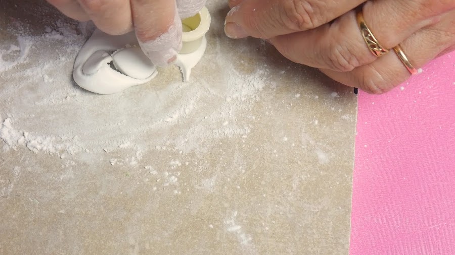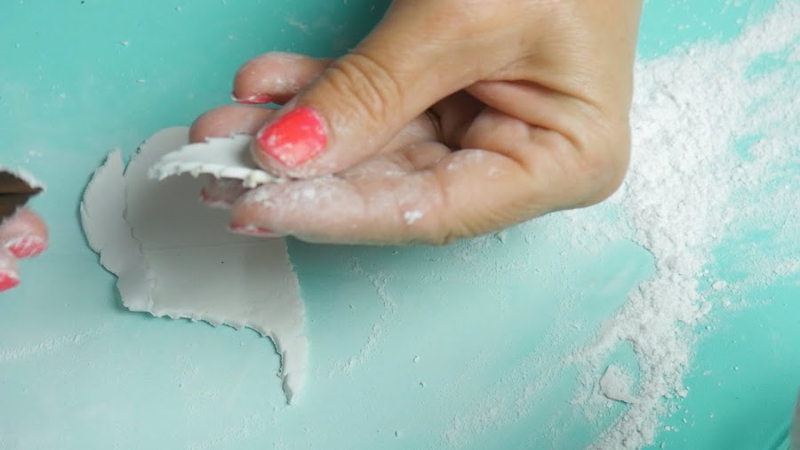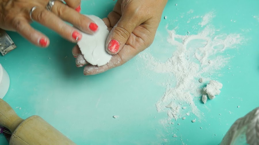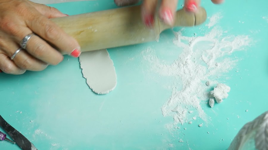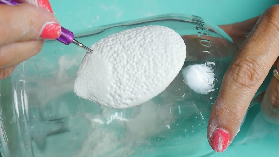 En la parte inferior le fui dando la forma típica de los limones, ayudándome con los dedos con talco para pasarlo por la pieza para suavizar.