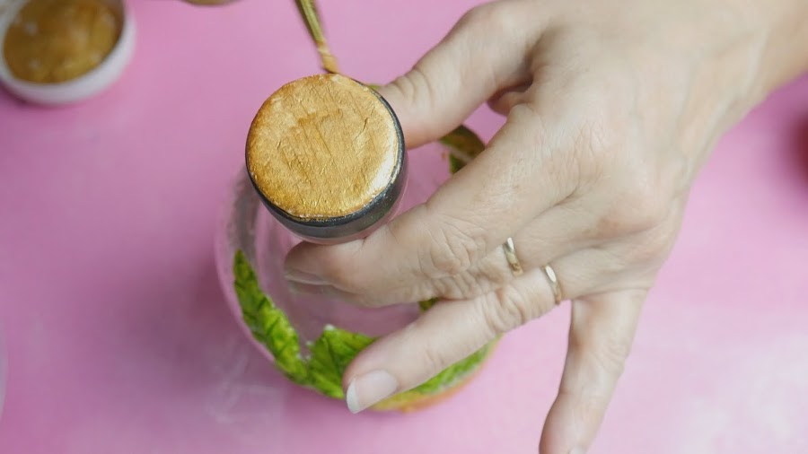 Así sigo completando la cantidad de hojitas yo que quiera. Se puede hacer solo el frente solo o cubrir toda la botella.