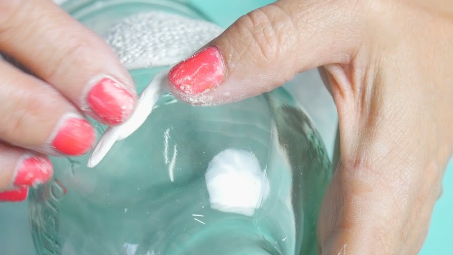 Luego de adherida esta porción al vidrio lo seguí trabajando para darle forma definitiva, aplastando los bordes y presionando para que se pegue bien.