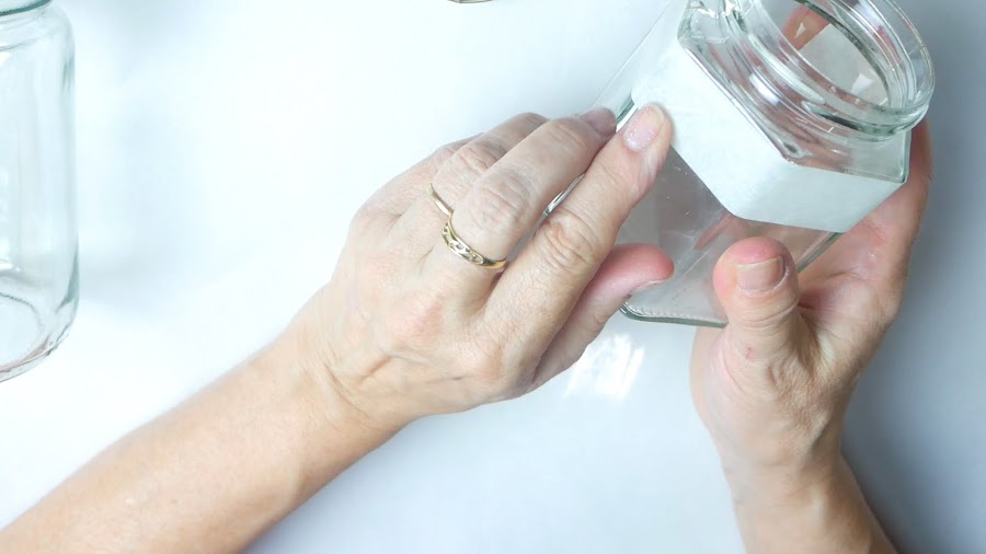 Realicé el mismo procedimiento en ambos frascos, siempre respetando el límite que marca la cinta.