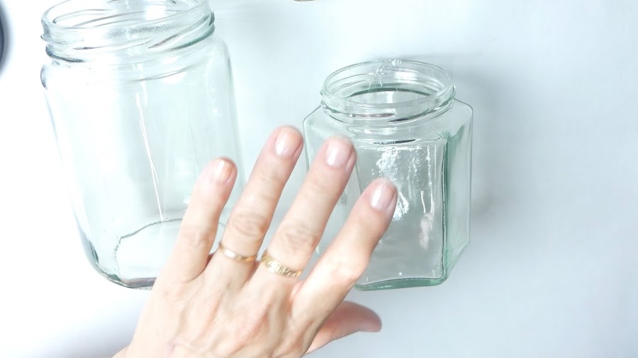 Elegí dos frascos bien distintos y marqué el límite hasta donde quiero que vaya la pintura con una cinta de papel.