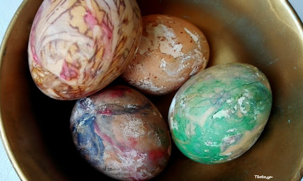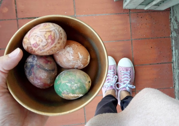 Este año por eso, me he dedicado a "estudiar" las diferentes técnicas de decoración de huevos de Pascua. Concretamente los he decorado con la técnica del decoupage, con laca de uñas y los he teñido con 100% seda natural.