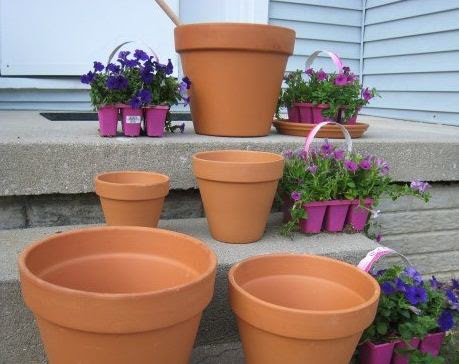 1.-Compra Macetas de barro de 5 tamaños diferentes,usa flores que sean para exteriores.