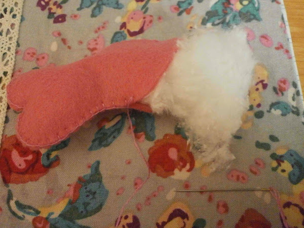 Cosí alrededor del fieltro y antes de acabar deje un trozo sin coser para poder meter el algodón, luego seguí cosiendo hasta cerrarlo todo.