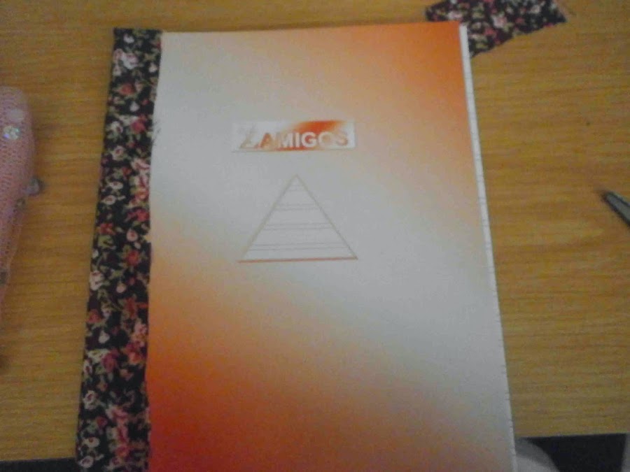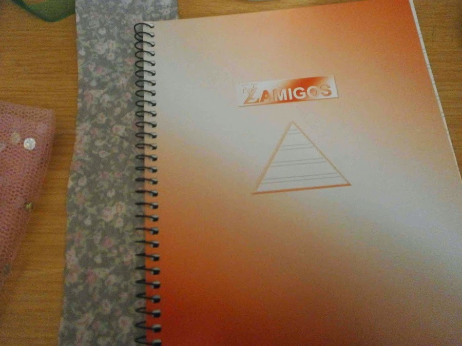 Hace tiempo que tenia esta libreta por casa, me había sobrado de la vuelta al cole,estaba sin estrenar y la verdad es que muy bonita no es que digamos. Entonces se me ocurrió que la podría decorar. Así me ha quedado.
