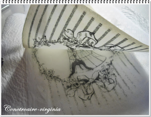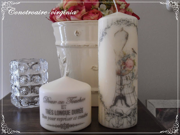 Para colocarlo en la vela, utilice la pistola de calor y papel de horno , os dejo el enlace del tutorial que ya puse hace tiempo :http://wwwconotroaire-virginia.blogspot.com.es/2011/11/decorando-velas.HTML