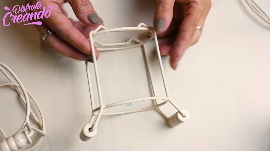 Como la base de alambre que venía con el frasco es muy oscura la voy a pintar con pintura en aerosol de color manteca.